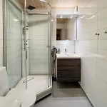 Die Badezimmer in der Gorgeous Home In Svingvoll With Wifi sind mit einer Dusche und einer Waschmaschine ausgestattet.